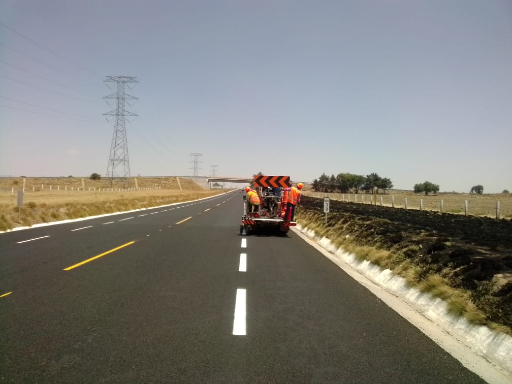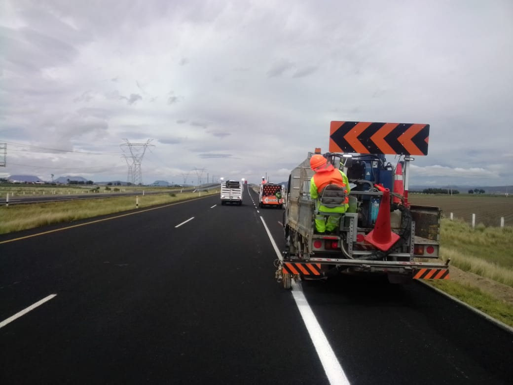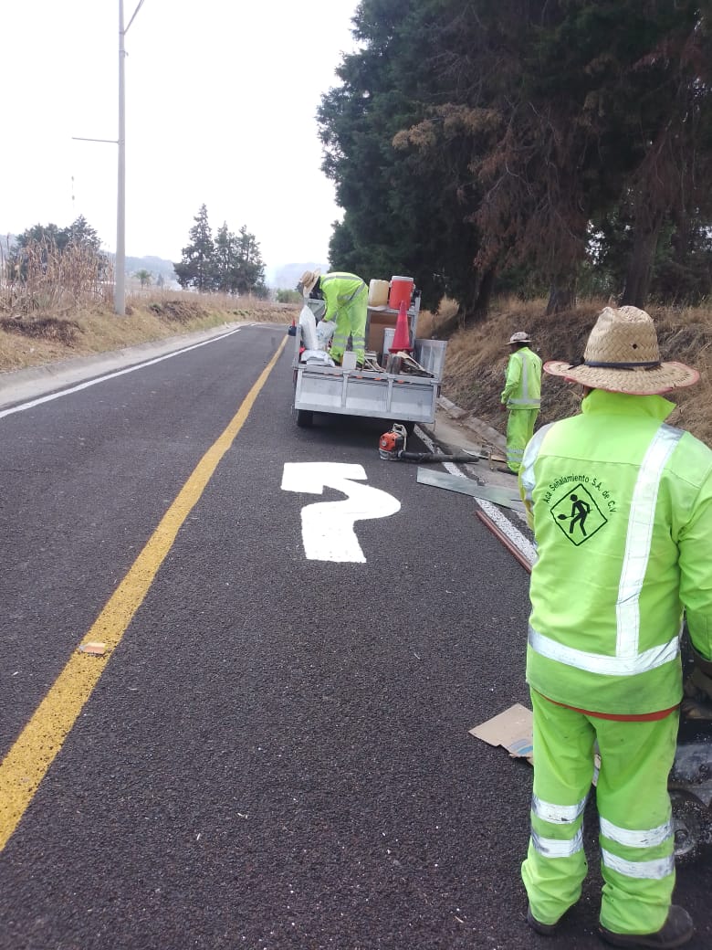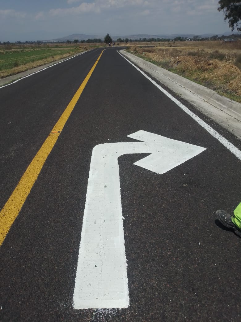 "El señalamiento horizontal es el conjunto de marcas y dispositivos que se pintan o colocan sobre el pavimento, guarniciones y estructuras con el propósito de delinear las características geométricas de las carreteras y vialidades urbanas.